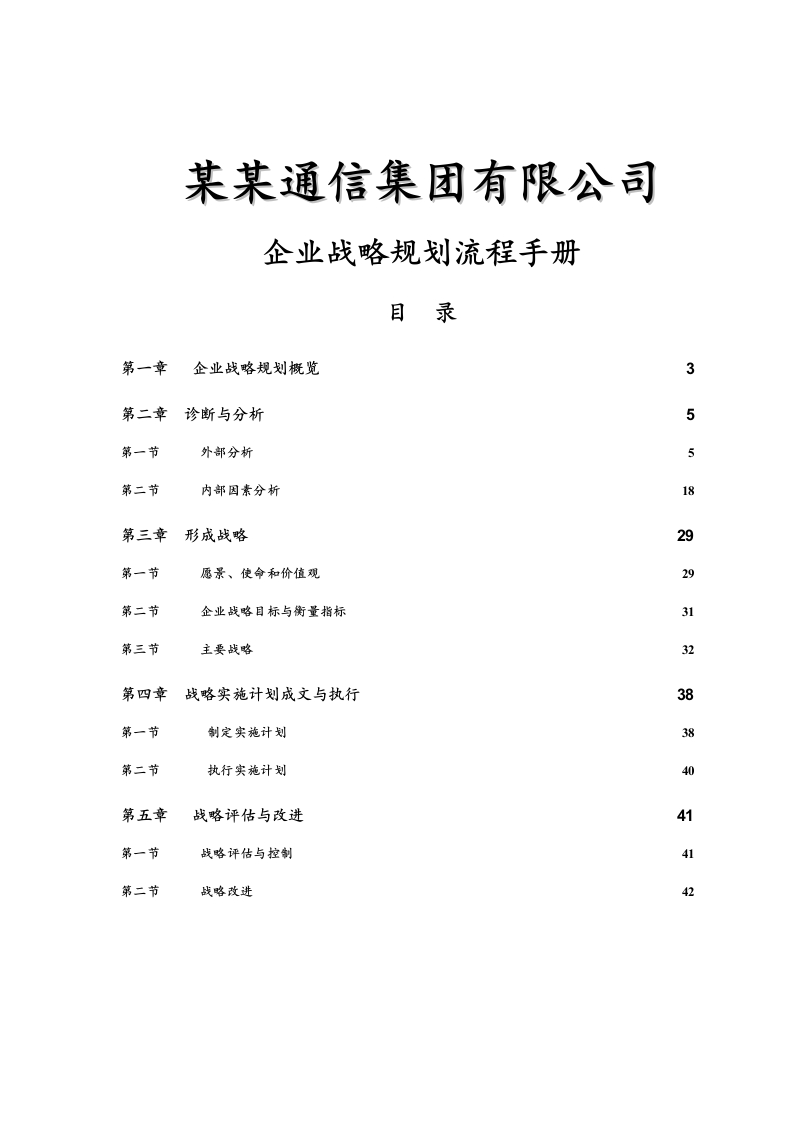 某某通信集团有限公司企业战略规划流程手册