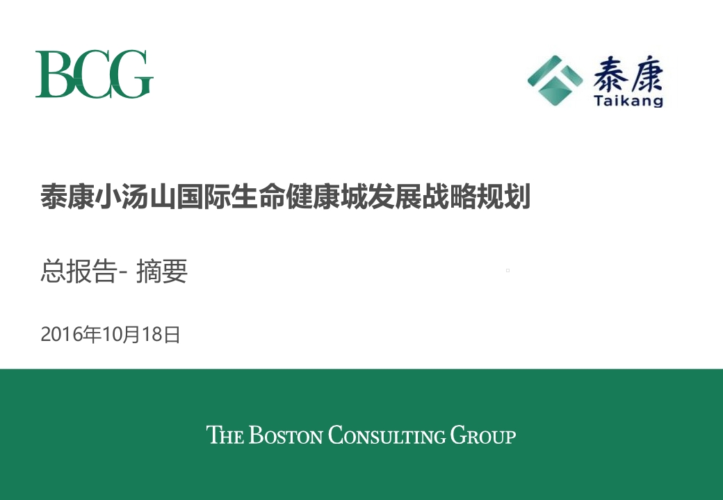 首页甄选方案战略规划BCG-泰康小汤山国际健康城发展战略规划报告
