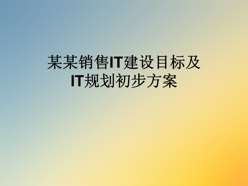某某销售IT建设目标及IT规划初步方案