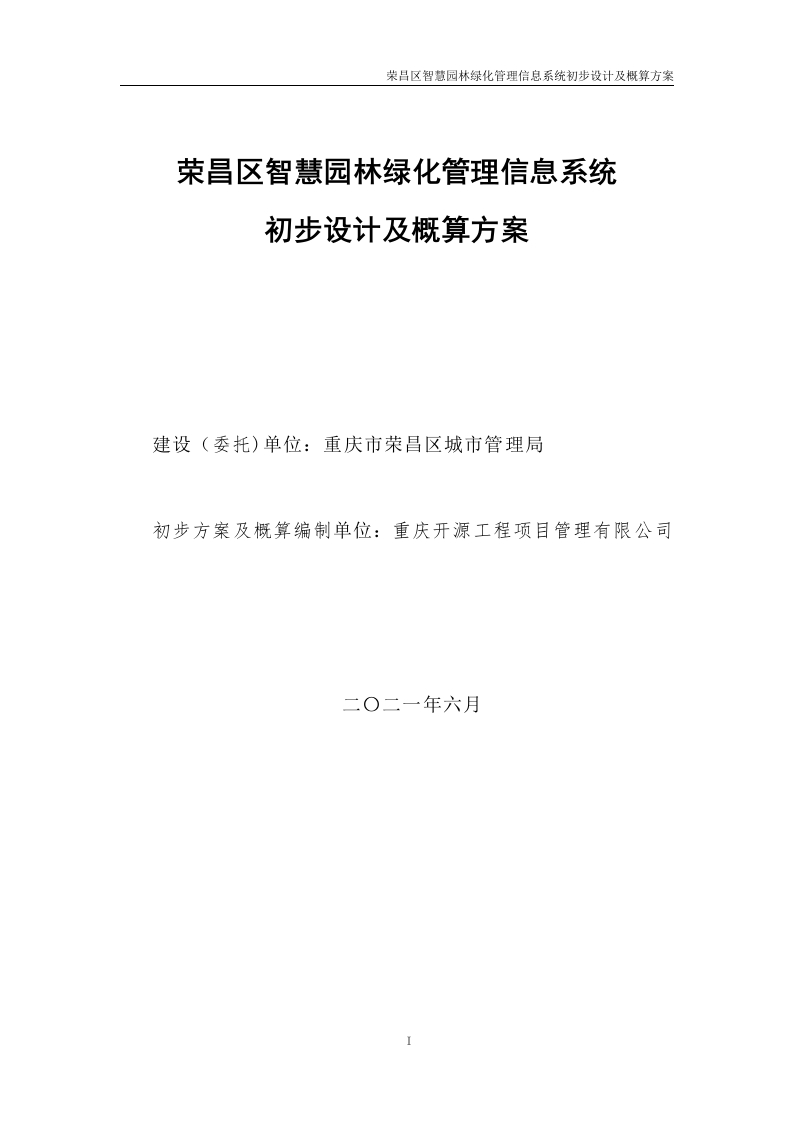 重庆荣昌区智慧园林信息系统初步设计及概算方案